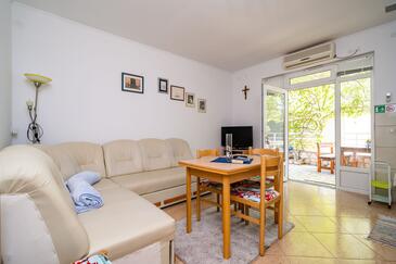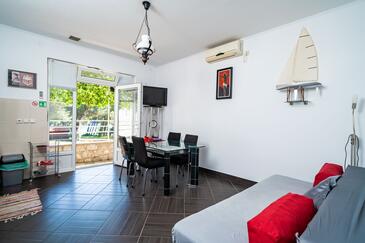 Az Apartman 4 főt tud fogadni. Az ágyak a/az 1 hálószobában, és a nappaliban/ben vannak, melynek méretei 35m2. Az apartmanból tengerre néző kilátás nyílik. A közös barbecue-helyet a vendég szabadon használhatja. A lefoglalt szállásegység közös teraszt használ..