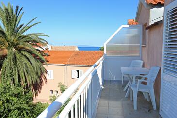 Az Apartman 4 főt tud fogadni. Az ágyak a/az 1 hálószobában, és a nappaliban/ben vannak, melynek méretei 45m2. A forró nyári estéket a vendégek saját teraszukon élvezhetik. Az apartmanból tengerre néző kilátás nyílik. A közös barbecue-helyet a vendég szabadon használhatja. A szállásegységbe lehetséges háziállatot hozni felár ellenében.