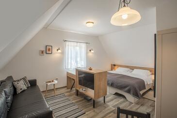 Az Apartman 4 főt tud fogadni. Az ágyak a/az 1 hálószobában, és a nappaliban/ben vannak, melynek méretei 51m2. A teljes élvezet és kikapcsolódás érdekében van saját barbecue hely is, csakis e szálláshely vendégei számára. A lefoglalt szállásegységhez nem tartozik erkély vagy terasz..