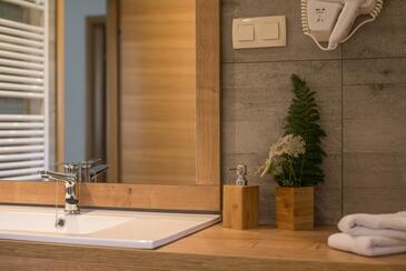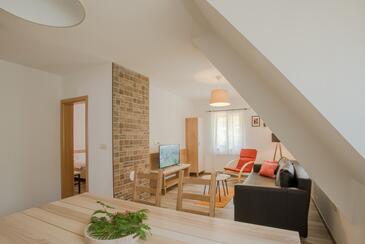 Az Apartman 4 főt tud fogadni. Az ágyak a/az 1 hálószobában, és a nappaliban/ben vannak, melynek méretei 51m2. A teljes élvezet és kikapcsolódás érdekében van saját barbecue hely is, csakis e szálláshely vendégei számára. A lefoglalt szállásegységhez nem tartozik erkély vagy terasz..