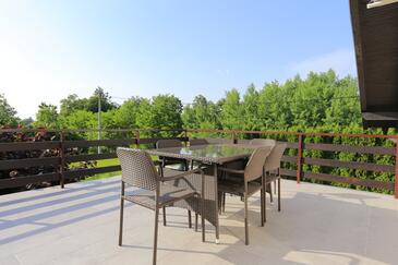 Az Apartman 4 főt tud fogadni. Az ágyak a/az 2 hálószobában vannak, melynek méretei 84m2. A forró nyári estéket a vendégek saját teraszukon élvezhetik. A közös barbecue-helyet a vendég szabadon használhatja.