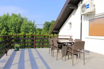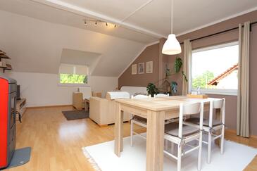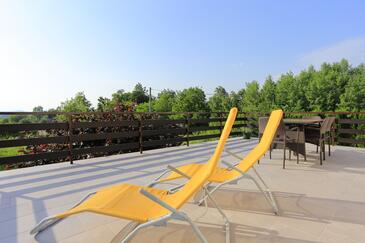 Az Apartman 4 főt tud fogadni. Az ágyak a/az 2 hálószobában vannak, melynek méretei 84m2. A forró nyári estéket a vendégek saját teraszukon élvezhetik. A közös barbecue-helyet a vendég szabadon használhatja.