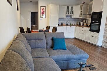 Az Apartman 3 főt tud fogadni. Az ágyak a/az 1 hálószobában, és a nappaliban/ben vannak, melynek méretei 45m2. A közös barbecue-helyet a vendég szabadon használhatja. A lefoglalt szállásegységhez nem tartozik erkély vagy terasz..