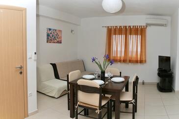 Az Apartman 6 főt tud fogadni. Az ágyak a/az 2 hálószobában, és a étkezőban/ben vannak, melynek méretei 47m2. A forró nyári estéket a vendégek saját balkonukon élvezhetik. Az apartmanból tengerre néző kilátás nyílik. A közös barbecue-helyet a vendég szabadon használhatja.