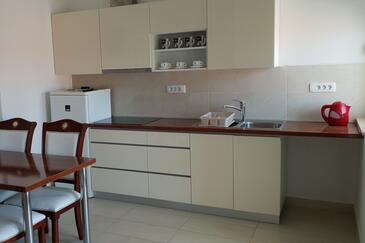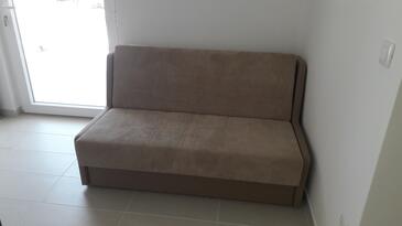 Az Apartman 4 főt tud fogadni. Az ágyak a/az 1 hálószobában, és a nappaliban/ben vannak, melynek méretei 33m2. A forró nyári estéket a vendégek saját teraszukon élvezhetik. Az apartmanból tengerre néző kilátás nyílik. A közös barbecue-helyet a vendég szabadon használhatja. A szállásegységbe lehetséges háziállatot hozni felár ellenében.