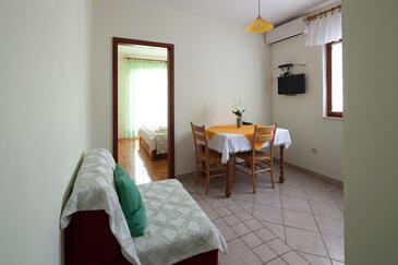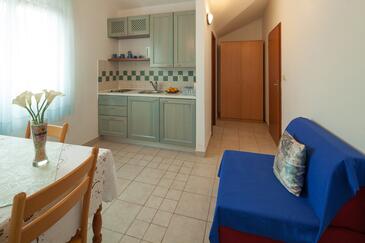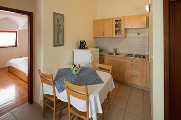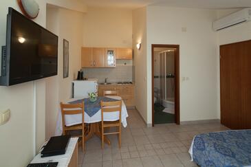 Az Apartman 3 főt tud fogadni. Az ágyak a/az 1 hálószobában, és a étkezőban/ben vannak, melynek méretei 26m2. A forró nyári estéket a vendégek saját teraszukon élvezhetik. Az apartmanból tengerre néző kilátás nyílik. A közös barbecue-helyet a vendég szabadon használhatja. A szállásegységbe lehetséges háziállatot hozni felár ellenében.