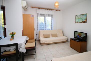 Az Apartman 4 főt tud fogadni. Az ágyak a/az 1 hálószobában, és a nappaliban/ben vannak, melynek méretei 33m2. A forró nyári estéket a vendégek saját balkonukon élvezhetik. Az apartmanból tengerre néző kilátás nyílik. A közös barbecue-helyet a vendég szabadon használhatja.