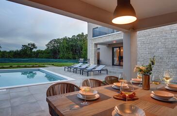 Az Ház 6 főt tud fogadni. Az ágyak a/az 3 hálószobában vannak, melynek méretei 135m2. A forró nyári estéket a vendégek saját teraszukon élvezhetik. A teljes élvezet és kikapcsolódás érdekében van saját barbecue hely is, csakis e szálláshely vendégei számára. A vendégek itt tartózkodásuk ideje alatt kikapcsolódás céljából használhatják a magán medencét. A lefoglalt szállásegység vendégeinek az érkezés napján a helyszínen letétet kell fizetniük (az összeg a honlapon fel van tüntetve).