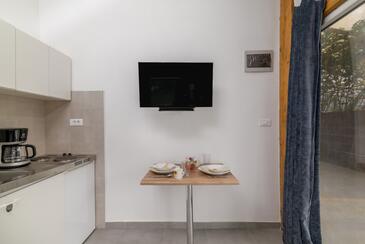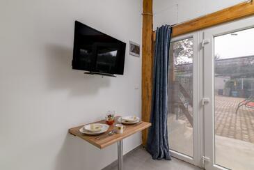 Az Stúdió 3 főt tud fogadni. Az ágyak a/az 1 hálószobában, és a nappaliban/ben vannak, melynek méretei 25m2. A forró nyári estéket a vendégek saját teraszukon élvezhetik. A közös barbecue-helyet a vendég szabadon használhatja. A szállásegységbe lehetséges háziállatot hozni, ennek költségét a foglalási díj tartalmazza.