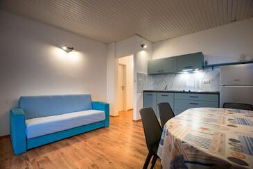 Az Apartman 3 főt tud fogadni. Az ágyak a/az 1 hálószobában, és a nappaliban/ben vannak, melynek méretei 37m2. A forró nyári estéket a vendégek saját teraszukon élvezhetik. Az apartmanból tengerre néző kilátás nyílik. A közös barbecue-helyet a vendég szabadon használhatja. A szállásegységbe lehetséges háziállatot hozni felár ellenében.