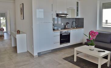 Az Apartman 2 főt tud fogadni. Az ágyak a/az 1 hálószobában vannak, melynek méretei 45m2. A forró nyári estéket a vendégek saját teraszukon élvezhetik. Az apartmanból tengerre néző kilátás nyílik. A közös barbecue-helyet a vendég szabadon használhatja.