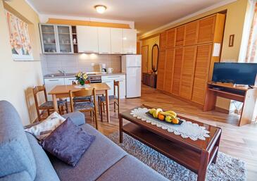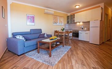 Az Apartman 6 főt tud fogadni. Az ágyak a/az 2 hálószobában, és a nappaliban/ben vannak, melynek méretei 67m2. A forró nyári estéket a vendégek saját teraszukon élvezhetik. Az apartmanból tengerre néző kilátás nyílik. A közös barbecue-helyet a vendég szabadon használhatja. A vendégek itt tartózkodásuk ideje alatt használhatják a közös medencét.