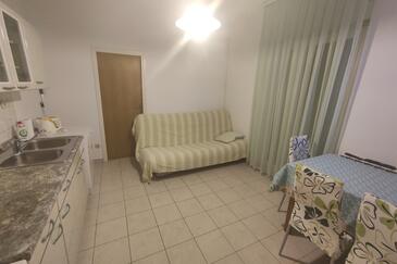 Az Apartman 4 főt tud fogadni. Az ágyak a/az 2 hálószobában vannak, melynek méretei 46m2. A forró nyári estéket a vendégek saját teraszukon élvezhetik. Az apartmanból tengerre néző kilátás nyílik. A közös barbecue-helyet a vendég szabadon használhatja. A szállásegységbe lehetséges háziállatot hozni felár ellenében.