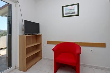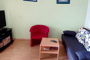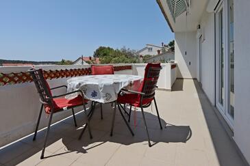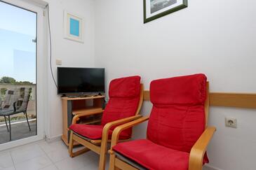 Az Apartman 4 főt tud fogadni. Az ágyak a/az 2 hálószobában vannak, melynek méretei 40m2. A forró nyári estéket a vendégek saját teraszukon élvezhetik. Az apartmanból tengerre néző kilátás nyílik. A közös barbecue-helyet a vendég szabadon használhatja. A szállásegységbe lehetséges háziállatot hozni felár ellenében.