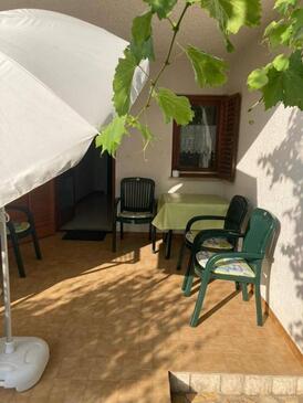 Az Apartman 3 főt tud fogadni. Az ágyak a/az 1 hálószobában, és a nappaliban/ben vannak, melynek méretei 29m2. A forró nyári estéket a vendégek saját teraszukon élvezhetik. Az apartmanból tengerre néző kilátás nyílik. A közös barbecue-helyet a vendég szabadon használhatja. A szállásegységbe lehetséges háziállatot hozni felár ellenében.