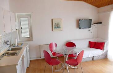 Az Apartman 3 főt tud fogadni. Az ágyak a/az 1 hálószobában, és a nappaliban/ben vannak, melynek méretei 35m2. A forró nyári estéket a vendégek saját teraszukon élvezhetik. Az apartmanból tengerre néző kilátás nyílik. A szállásegységbe lehetséges háziállatot hozni felár ellenében.