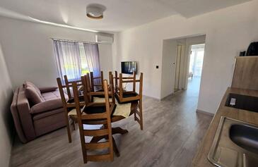 Az Apartman 3 főt tud fogadni. Az ágyak a/az 1 hálószobában, és a nappaliban/ben vannak, melynek méretei 44m2. A forró nyári estéket a vendégek saját teraszukon élvezhetik. Az apartmanból tengerre néző kilátás nyílik. A közös barbecue-helyet a vendég szabadon használhatja.