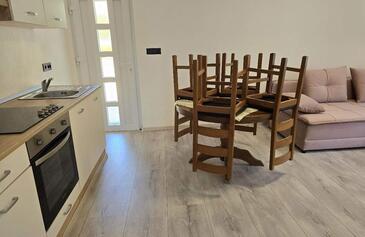 Az Apartman 3 főt tud fogadni. Az ágyak a/az 1 hálószobában, és a nappaliban/ben vannak, melynek méretei 44m2. A forró nyári estéket a vendégek saját teraszukon élvezhetik. Az apartmanból tengerre néző kilátás nyílik. A közös barbecue-helyet a vendég szabadon használhatja.