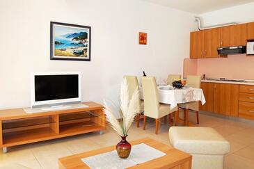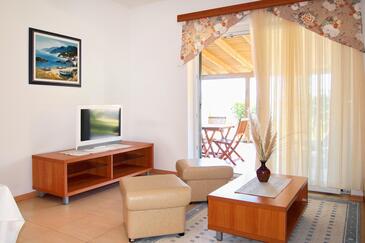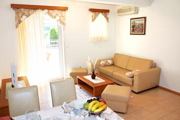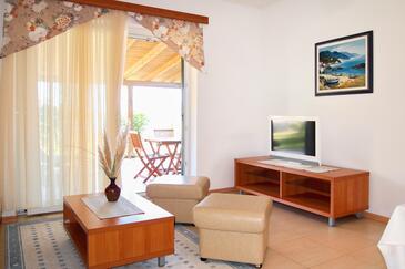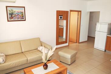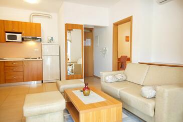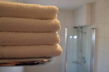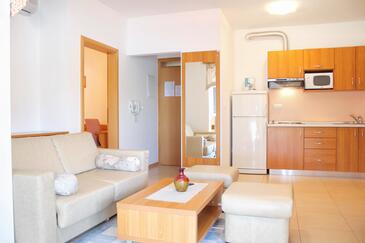 Az Apartman 6 főt tud fogadni. Az ágyak a/az 2 hálószobában, és a nappaliban/ben vannak, melynek méretei 46m2. A forró nyári estéket a vendégek saját teraszukon élvezhetik. Az apartmanból tengerre néző kilátás nyílik. A közös barbecue-helyet a vendég szabadon használhatja. A vendégek itt tartózkodásuk ideje alatt használhatják a közös medencét. A lefoglalt szállásegység vendégeinek az érkezés napján a helyszínen letétet kell fizetniük (az összeg a honlapon fel van tüntetve).