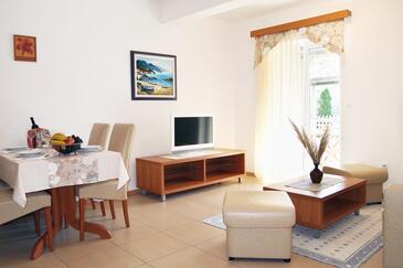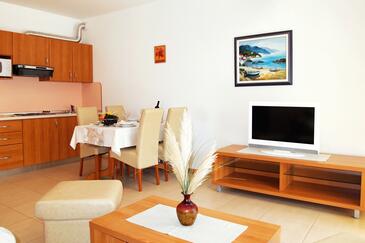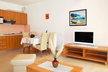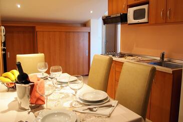 Az Apartman 6 főt tud fogadni. Az ágyak a/az 2 hálószobában, és a nappaliban/ben vannak, melynek méretei 46m2. A forró nyári estéket a vendégek saját teraszukon élvezhetik. Az apartmanból tengerre néző kilátás nyílik. A közös barbecue-helyet a vendég szabadon használhatja. A vendégek itt tartózkodásuk ideje alatt használhatják a közös medencét. A lefoglalt szállásegység vendégeinek az érkezés napján a helyszínen letétet kell fizetniük (az összeg a honlapon fel van tüntetve).