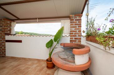 Az Apartman 5 főt tud fogadni. Az ágyak a/az 2 hálószobában vannak, melynek méretei 47m2. A forró nyári estéket a vendégek saját teraszukon élvezhetik. Az apartmanból tengerre néző kilátás nyílik. A teljes élvezet és kikapcsolódás érdekében van saját barbecue hely is, csakis e szálláshely vendégei számára. A szállásegységbe lehetséges háziállatot hozni felár ellenében.