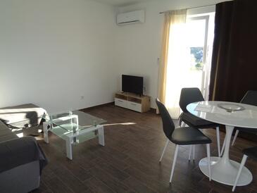 Az Apartman 5 főt tud fogadni. Az ágyak a/az 2 hálószobában vannak, melynek méretei 48m2. A forró nyári estéket a vendégek saját teraszukon élvezhetik. Az apartmanból tengerre néző kilátás nyílik. A közös barbecue-helyet a vendég szabadon használhatja.