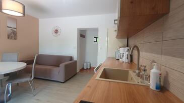 Az Apartman 3 főt tud fogadni. Az ágyak a/az 1 hálószobában, és a nappaliban/ben vannak, melynek méretei 32m2. A forró nyári estéket a vendégek saját teraszukon élvezhetik. A közös barbecue-helyet a vendég szabadon használhatja. A szállásegységbe lehetséges háziállatot hozni felár ellenében.