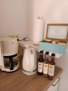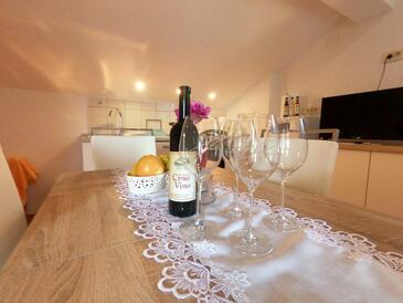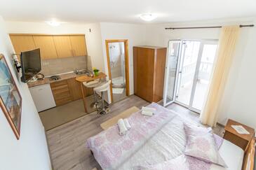 Az Apartman 4 főt tud fogadni. Az ágyak a/az 2 hálószobában vannak, melynek méretei 58m2. A forró nyári estéket a vendégek saját teraszukon élvezhetik. Az apartmanból tengerre néző kilátás nyílik. A közös barbecue-helyet a vendég szabadon használhatja. A szállásegységbe lehetséges háziállatot hozni felár ellenében.