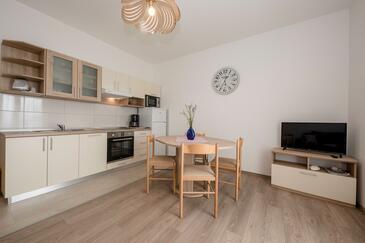 Az Apartman 5 főt tud fogadni. Az ágyak a/az 2 hálószobában vannak, melynek méretei 50m2. A forró nyári estéket a vendégek saját balkonukon élvezhetik. Az apartmanból tengerre néző kilátás nyílik. A közös barbecue-helyet a vendég szabadon használhatja. A szállásegységbe lehetséges háziállatot hozni felár ellenében.