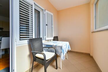 Az Apartman 4 főt tud fogadni. Az ágyak a/az 2 hálószobában vannak, melynek méretei 48m2. A forró nyári estéket a vendégek saját teraszukon élvezhetik. Az apartmanból tengerre néző kilátás nyílik. A közös barbecue-helyet a vendég szabadon használhatja. A szállásegységbe lehetséges háziállatot hozni felár ellenében. A szállásegység egyes helyiségei elkülönülnek a szállásegység többi részétől.