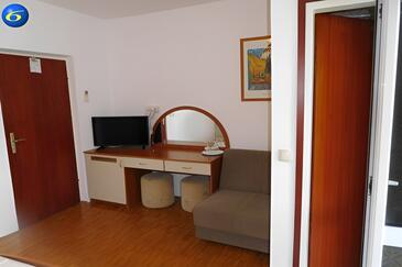 Az Szoba 2 főt tud fogadni. Az ágyak a/az 1 hálószobában vannak, melynek méretei 16m2. A forró nyári estéket a vendégek saját balkonukon élvezhetik. A szobából tengerre néző kilátás nyílik. A lefoglalt szállásegység a szoba kategóriába tartozik, amely saját fürdőszobával rendelkezik, azonban konyha illetve konyha használat nem tartozik a felszereltséghez..