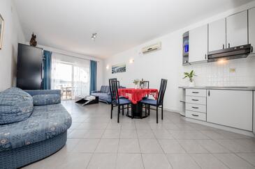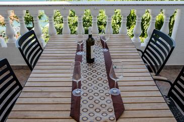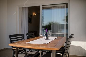 Az Apartman 4 főt tud fogadni. Az ágyak a/az 2 hálószobában vannak, melynek méretei 60m2. A forró nyári estéket a vendégek saját teraszukon élvezhetik. Az apartmanból tengerre néző kilátás nyílik. A közös barbecue-helyet a vendég szabadon használhatja. A szállásegységbe lehetséges háziállatot hozni felár ellenében.