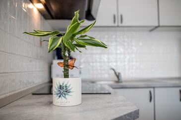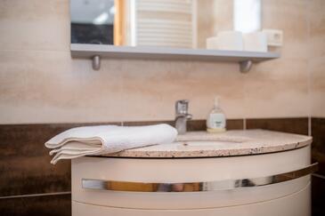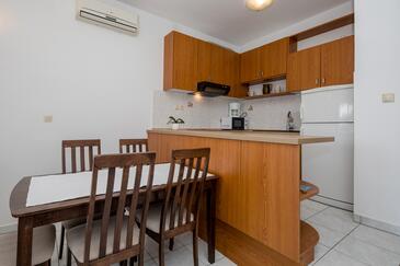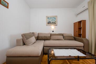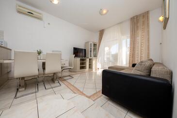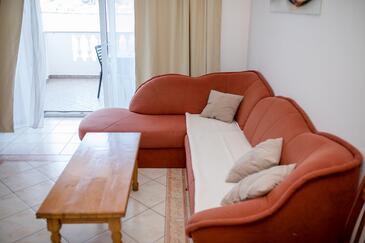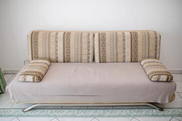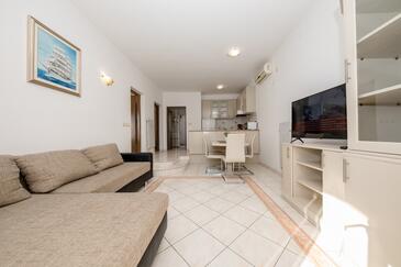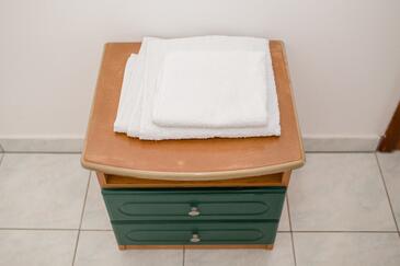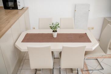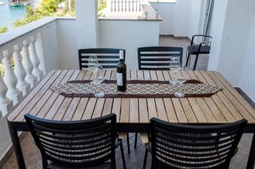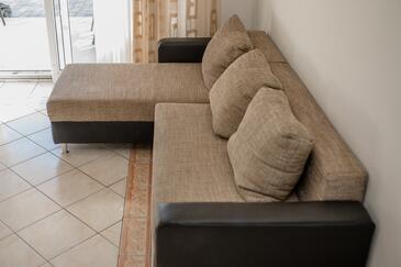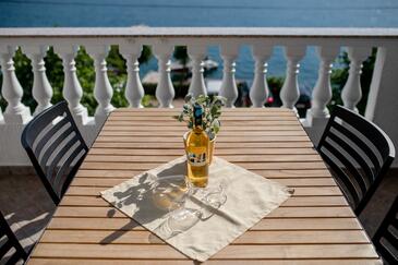 Az Apartman 4 főt tud fogadni. Az ágyak a/az 2 hálószobában vannak, melynek méretei 60m2. A forró nyári estéket a vendégek saját teraszukon élvezhetik. Az apartmanból tengerre néző kilátás nyílik. A közös barbecue-helyet a vendég szabadon használhatja. A szállásegységbe lehetséges háziállatot hozni felár ellenében.