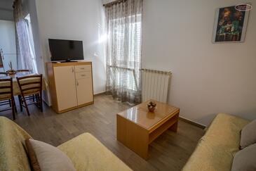 Az Apartman 4 főt tud fogadni. Az ágyak a/az 1 hálószobában, és a nappaliban/ben vannak, melynek méretei 40m2. A forró nyári estéket a vendégek saját balkonukon élvezhetik. Az apartmanból tengerre néző kilátás nyílik. A közös barbecue-helyet a vendég szabadon használhatja. A szállásegységbe lehetséges háziállatot hozni felár ellenében.
