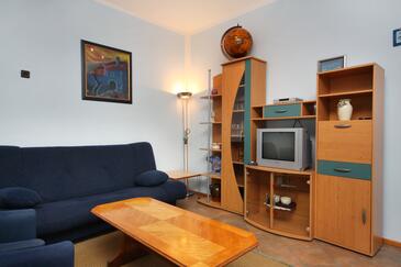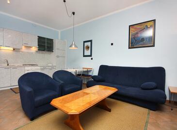 Az Apartman 4 főt tud fogadni. Az ágyak a/az 1 hálószobában, és a nappaliban/ben vannak, melynek méretei 38m2. A forró nyári estéket a vendégek saját teraszukon élvezhetik. Az apartmanból tengerre néző kilátás nyílik. A közös barbecue-helyet a vendég szabadon használhatja. A szállásegységbe lehetséges háziállatot hozni felár ellenében. A lefoglalt szállásegység teraszán áthaladnak más vendégek, vagy a tulajdonosok.