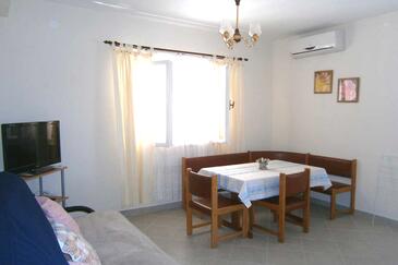 Az Apartman 4 főt tud fogadni. Az ágyak a/az 1 hálószobában, és a étkezőban/ben vannak, melynek méretei 50m2. A forró nyári estéket a vendégek saját teraszukon élvezhetik. Az apartmanból tengerre néző kilátás nyílik. A közös barbecue-helyet a vendég szabadon használhatja.