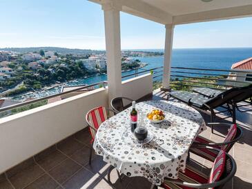 Az Apartman 3 főt tud fogadni. Az ágyak a/az 1 hálószobában, és a nappaliban/ben vannak, melynek méretei 46m2. A forró nyári estéket a vendégek saját teraszukon élvezhetik. Az apartmanból tengerre néző kilátás nyílik. A közös barbecue-helyet a vendég szabadon használhatja.