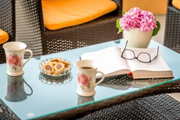 Az Apartman 7 főt tud fogadni. Az ágyak a/az 2 hálószobában, és a nappaliban/ben vannak, melynek méretei 49m2. A forró nyári estéket a vendégek saját teraszukon élvezhetik. Az apartmanból tengerre néző kilátás nyílik. A közös barbecue-helyet a vendég szabadon használhatja. A szállásegységbe lehetséges háziállatot hozni felár ellenében.