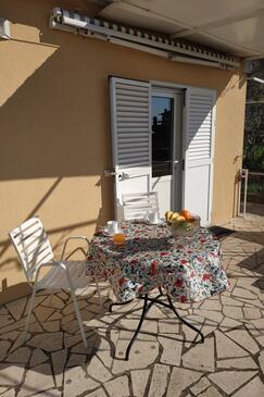 Az Apartman 3 főt tud fogadni. Az ágyak a/az 2 hálószobában vannak, melynek méretei 45m2. A forró nyári estéket a vendégek saját teraszukon élvezhetik. Az apartmanból tengerre néző kilátás nyílik. A közös barbecue-helyet a vendég szabadon használhatja. A szállásegységbe lehetséges háziállatot hozni felár ellenében.
