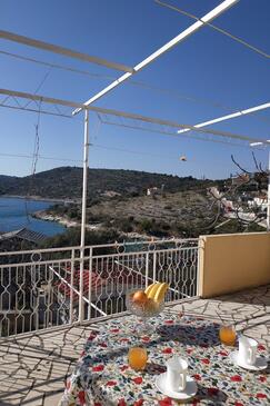 Az Apartman 3 főt tud fogadni. Az ágyak a/az 2 hálószobában vannak, melynek méretei 45m2. A forró nyári estéket a vendégek saját teraszukon élvezhetik. Az apartmanból tengerre néző kilátás nyílik. A közös barbecue-helyet a vendég szabadon használhatja. A szállásegységbe lehetséges háziállatot hozni felár ellenében.