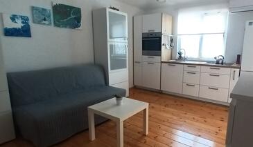Az Apartman 2 főt tud fogadni. Az ágyak a/az 1 hálószobában vannak, melynek méretei 31m2. A forró nyári estéket a vendégek saját teraszukon élvezhetik. Az apartmanból tengerre néző kilátás nyílik. A közös barbecue-helyet a vendég szabadon használhatja.