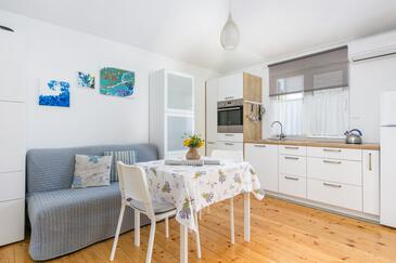 Az Apartman 2 főt tud fogadni. Az ágyak a/az 1 hálószobában vannak, melynek méretei 31m2. A forró nyári estéket a vendégek saját teraszukon élvezhetik. Az apartmanból tengerre néző kilátás nyílik. A közös barbecue-helyet a vendég szabadon használhatja.