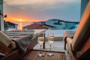 Az Ház 6 főt tud fogadni. Az ágyak a/az 3 hálószobában vannak, melynek méretei 94m2. A forró nyári estéket a vendégek saját teraszukon élvezhetik. A házból tengerre néző kilátás nyílik. A teljes élvezet és kikapcsolódás érdekében van saját barbecue hely is, csakis e szálláshely vendégei számára. A vendégek itt tartózkodásuk ideje alatt kikapcsolódás céljából használhatják a magán medencét. A szállásegységbe lehetséges háziállatot hozni, ennek költségét a foglalási díj tartalmazza.