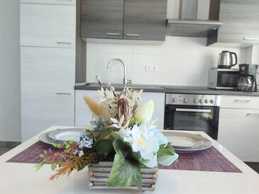 Az Apartman 4 főt tud fogadni. Az ágyak a/az 2 hálószobában, és a nappaliban/ben vannak, melynek méretei 45m2. A forró nyári estéket a vendégek saját balkonukon élvezhetik. Az apartmanból tengerre néző kilátás nyílik. A közös barbecue-helyet a vendég szabadon használhatja. A vendégek itt tartózkodásuk ideje alatt használhatják a közös medencét.