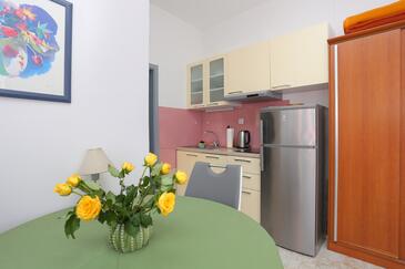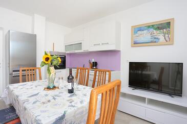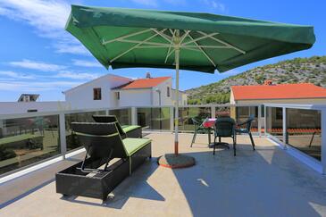 Az Apartman 6 főt tud fogadni. Az ágyak a/az 3 hálószobában vannak, melynek méretei 56m2. A forró nyári estéket a vendégek saját teraszukon élvezhetik. Az apartmanból tengerre néző kilátás nyílik. A közös barbecue-helyet a vendég szabadon használhatja. A szállásegységbe lehetséges háziállatot hozni felár ellenében.