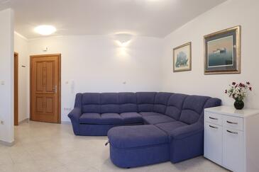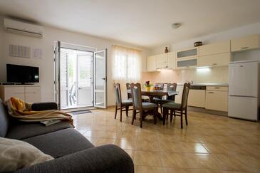 Az Apartman 4 főt tud fogadni. Az ágyak a/az 1 hálószobában, és a nappaliban/ben vannak, melynek méretei 45m2. A forró nyári estéket a vendégek saját teraszukon élvezhetik. Az apartmanból tengerre néző kilátás nyílik. A közös barbecue-helyet a vendég szabadon használhatja.