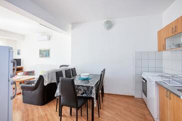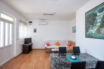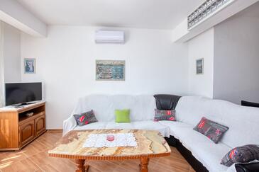 Az Apartman 8 főt tud fogadni. Az ágyak a/az 3 hálószobában, és a nappaliban/ben vannak, melynek méretei 63m2. A forró nyári estéket a vendégek saját teraszukon élvezhetik. Az apartmanból tengerre néző kilátás nyílik. A közös barbecue-helyet a vendég szabadon használhatja. A szállásegységbe lehetséges háziállatot hozni felár ellenében. A szállásegység egyes helyiségei elkülönülnek a szállásegység többi részétől.