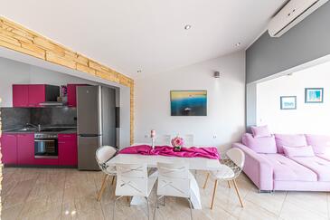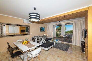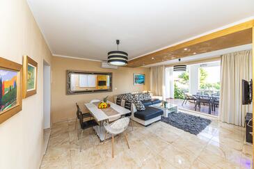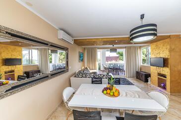 Az Ház 15 főt tud fogadni. Az ágyak a/az 5 hálószobában, és a nappaliban/ben vannak, melynek méretei 150m2. A forró nyári estéket a vendégek saját teraszukon élvezhetik. A házból tengerre néző kilátás nyílik. A teljes élvezet és kikapcsolódás érdekében van saját barbecue hely is, csakis e szálláshely vendégei számára. A vendégek itt tartózkodásuk ideje alatt kikapcsolódás céljából használhatják a magán medencét. A lefoglalt szállásegység bizonyos helyiségei nem összekötöttek.