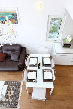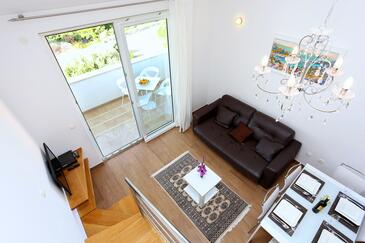 Az Apartman 6 főt tud fogadni. Az ágyak a/az 2 hálószobában, és a nappaliban/ben vannak, melynek méretei 59m2. A forró nyári estéket a vendégek saját teraszukon élvezhetik. Az apartmanból tengerre néző kilátás nyílik. A közös barbecue-helyet a vendég szabadon használhatja.