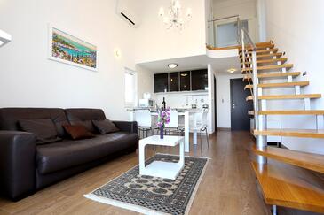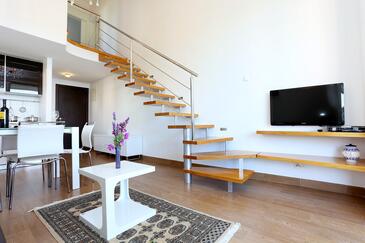 Az Apartman 6 főt tud fogadni. Az ágyak a/az 2 hálószobában, és a nappaliban/ben vannak, melynek méretei 59m2. A forró nyári estéket a vendégek saját teraszukon élvezhetik. Az apartmanból tengerre néző kilátás nyílik. A közös barbecue-helyet a vendég szabadon használhatja.